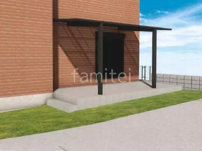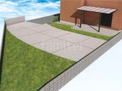 駐車スペースは耐久性に優れた土間コンクリート仕上げとし、日常の車の出入りに安心感を持たせました。 周囲には天然芝を敷き詰め、緑豊かな景観と柔らかな足触りを楽しめる空間を演出しています。 お庭スペースにはタイルデッキを設け、1台用カーポート YKKAP エフルージュFIRSTをテラス屋根代わりに活用し、雨天時でも快適に過ごせる半屋外空間に仕上げました。