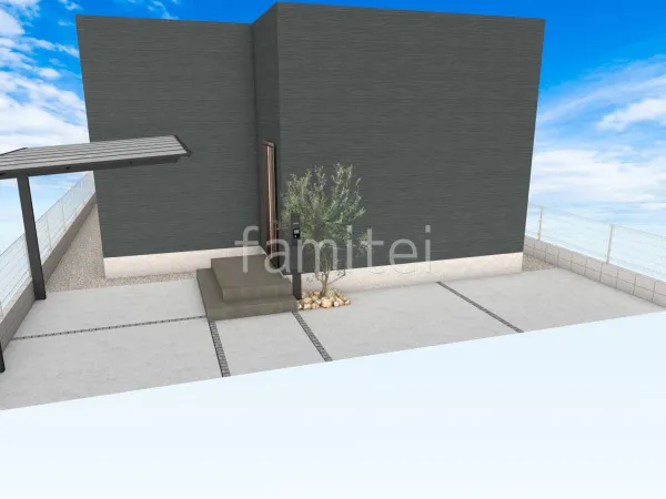 ピンコロ石目地がクールな新築ベーシック オープン外構